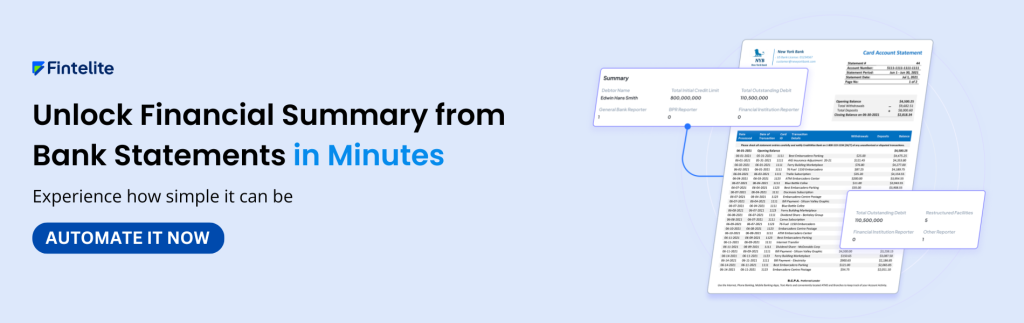 So, how can you take the hassle of manual review out of your routine processes? Enter AI-powered tools like Fintelite to automate bank statement analysis. It significantly optimizes workloads by making bank statement analysis fully autonomous. With AI taking over analysis, your team can spend less crunching numbers, more time focusing on decision making.