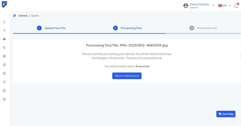Start by uploading the file, either scanned images or in PDFs, into the Fintelite dashboard.