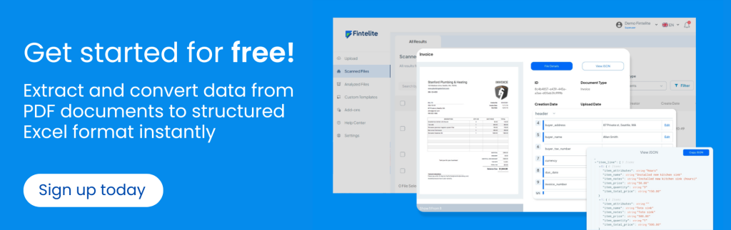 - Fintelite’s AI OCR is the perfect tool to automate table data extraction and transfer from PDF to Excel