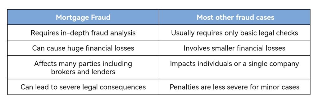 There is a wide range of documents during mortgage loan verification, which is why identifying fraud in this area requires more thorough investigation. To get a clearer understanding about this, let’s see how mortgage fraud compares to other types of fraud in most cases.
