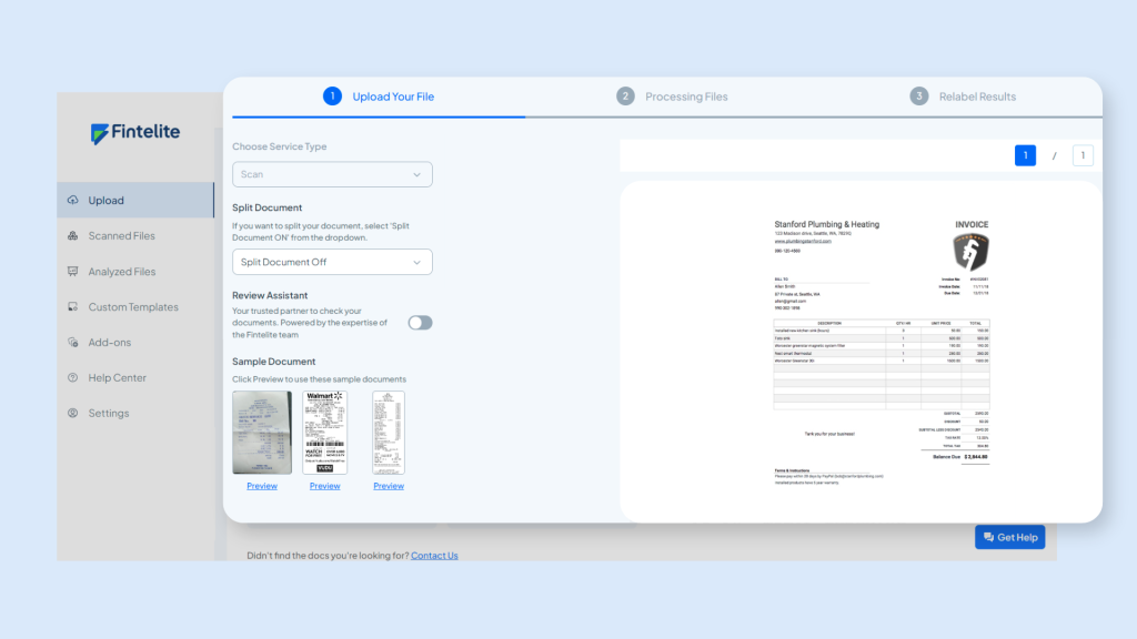 Fintelite makes the move toward a paperless, automated invoice processing effortless. We’ve simplified complex AI technology so you can start extracting line-item data without the traditional manual templates. Here’s how simple the process is:
