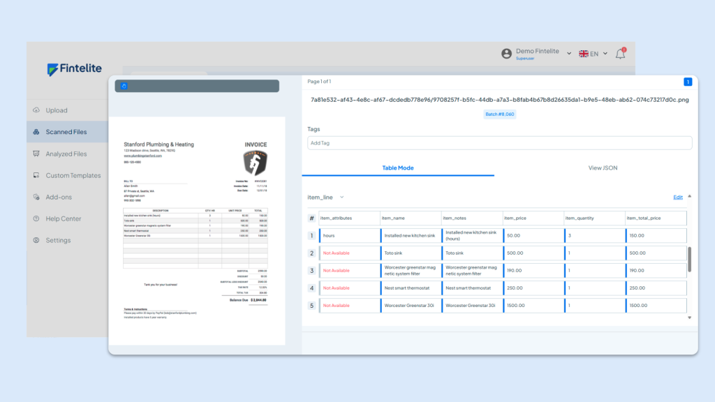 With an advanced Document AI solution, automating invoice data extraction has become more convenient and accessible for businesses of all sizes. Modern AI models can now intelligently understand data in even the most complex table structures with precision. In this article, we’ll explore why making the switch to automated line item extraction is the fastest way to streamline invoice processing, and how you can get started easily on the Fintelite platform.