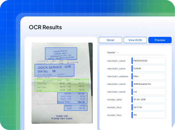 Book closing is much faster when data from both sources are available in a structured format. OCR automatically extracts data from bank statements and internal ledgers, ensuring accurate records for seamless reconciliation.