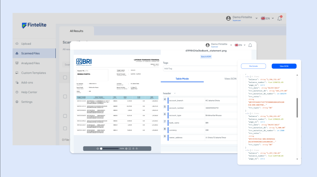 Fintelite is an intelligent OCR solution designed for businesses to automate data capture and streamline document workflows. By leveraging AI, Fintelite OCR facilitates template-free data extraction for any type of document, even complex bank statements. Here are why many teams and businesses turn to Fintelite AI OCR to simplify their bank statement processing.